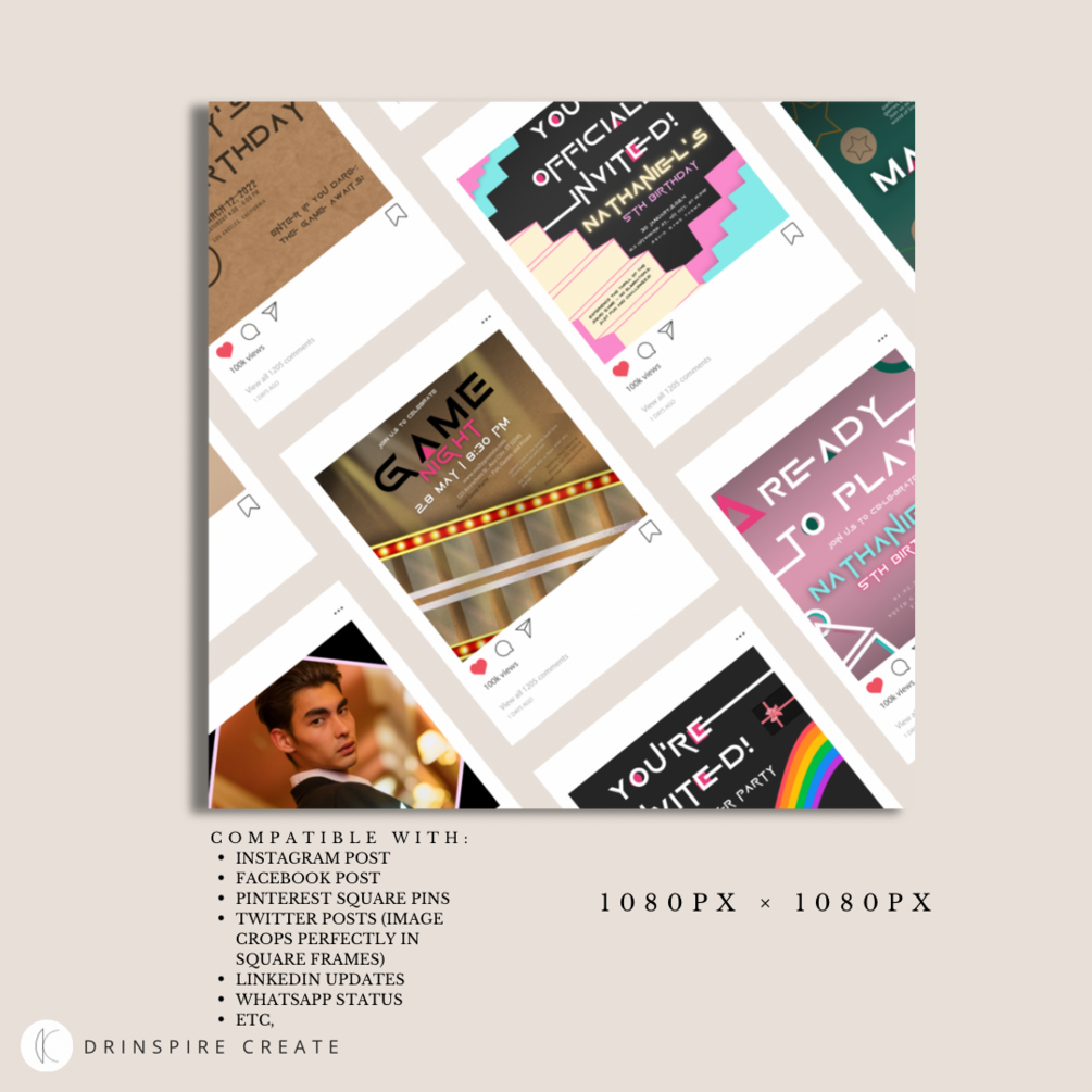 • 1 Instagram Story Template (1080 x 1920 px) • 1 Instagram Post Template (1080 x 1080 px) • 1 Double-Sided Poster Template (5 x 7 in, front and back)